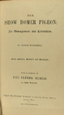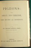 enlarged second edition 1883; 348pp with ads in back; generously illustrated by the author himself (woodcuts); one of the great pigeon books of the nineteenth century; cover embossed with gold foil without chipping or flaking; text pages clean and bright; a beautiful book.