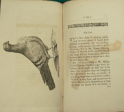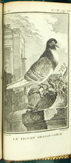 1765; 144pp; C. Barry, London; frontis plate plus thirteen copper engravings. Professionally bound in kidskin with hubs and 24kt gold foil; deckled pages. This is the rare tall edition with the even more rare plate of the Black Mottled Tumbler with Mayor signature; the first illustrated English-language book dedicated to pigeons. A classic title; very sought-after and nearly flawless.